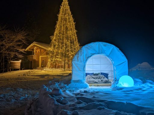 幻想的にライトアップされたかまくらのなかで、温かいご夕食をご堪能いただけます。